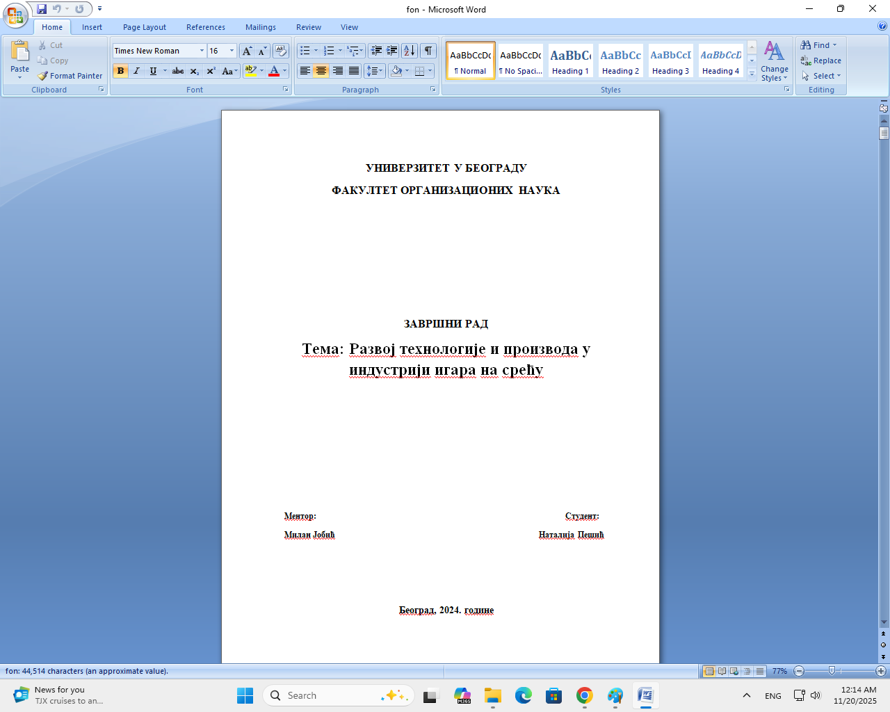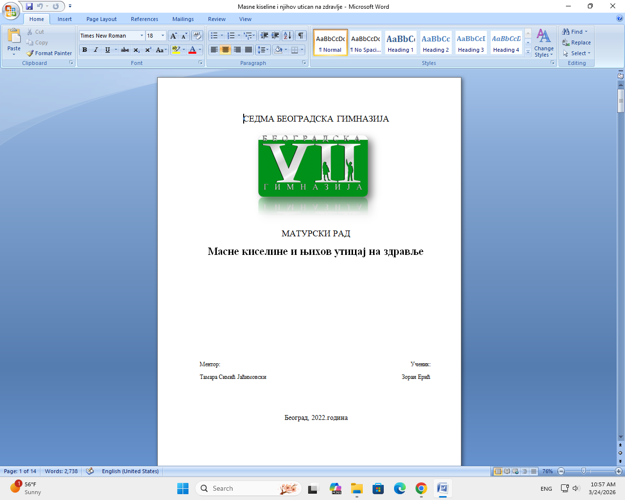 Dajem podrsku pri izradi zavrsnih radova za sve skole i fakultete: