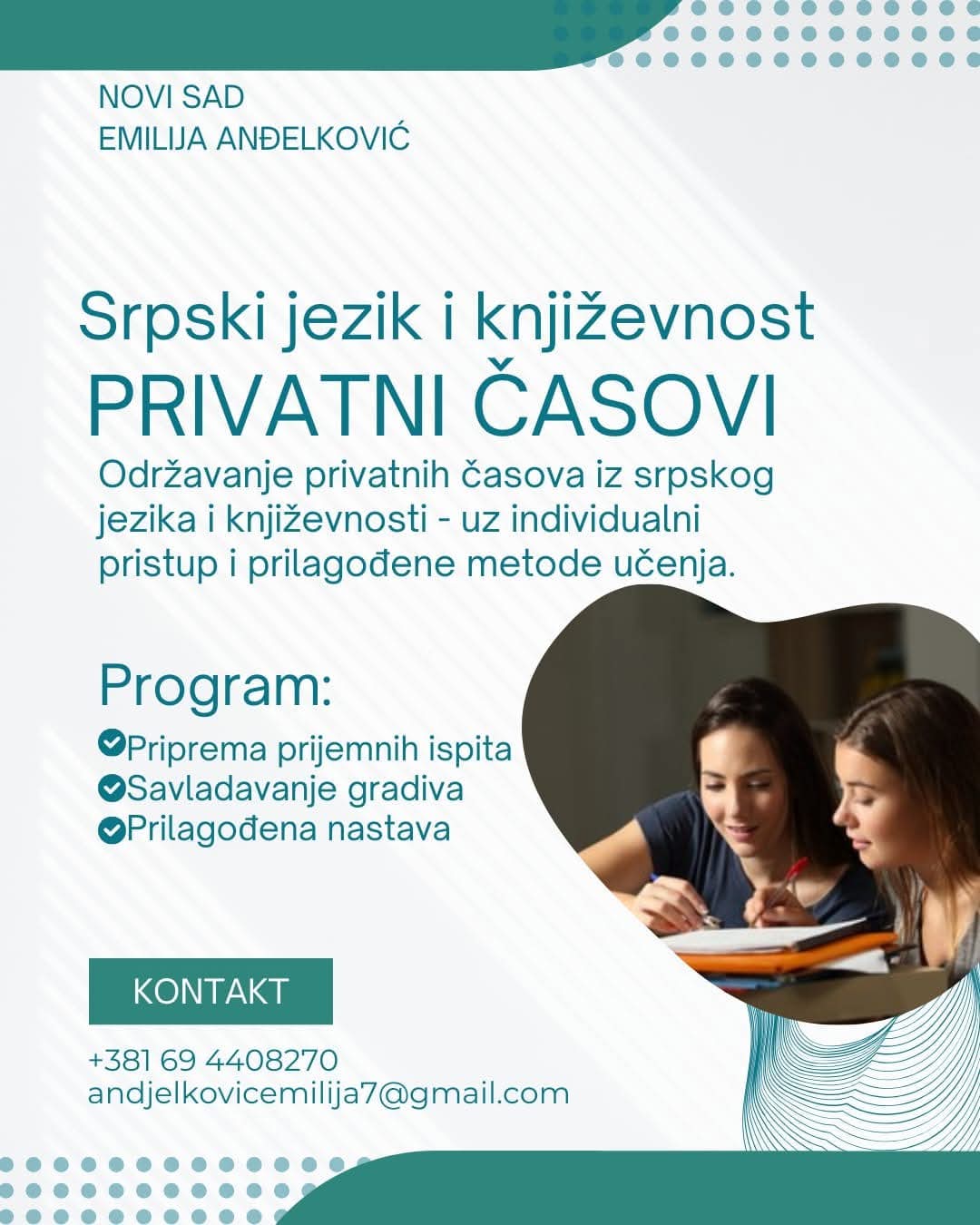 Privatni časovi srpskog jezika i književnosti za osnovnu i srednju školu, priprema za prijemni ispit: