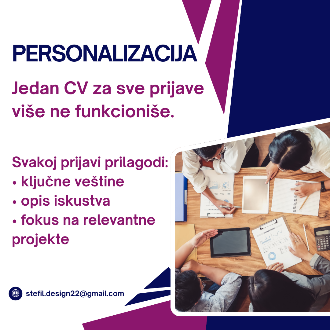 Personalizacija: Svaki CV je prilagođen vašim specifičnim potrebama i iskustvu.