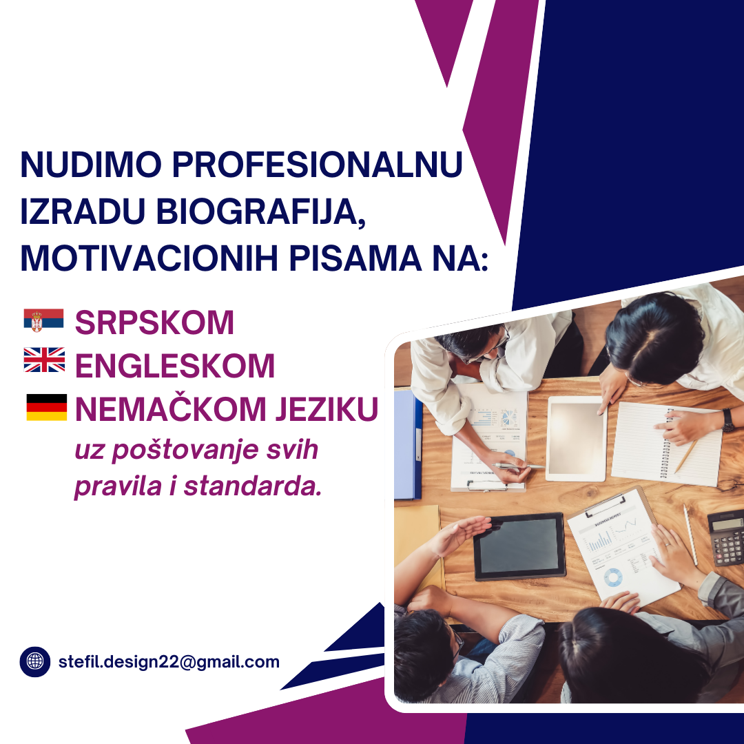 Izrada biografija i motivacionog pisma na Nemačkom, Engleskom i Srpskom jeziku.